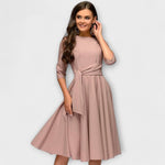 Alma- Elegáns Midi Ruha Széles Derékkötéssel